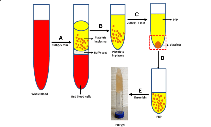 Để chuẩn bị tiêm PRP, chuyên gia y tế sẽ lấy mẫu máu của một người. Họ sẽ niêm phong mẫu này trong bình chứa và cho vào máy ly tâm. Thiết bị này sau đó quay với tốc độ cao đến mức mẫu máu phân tách thành các thành phần,một trong số đó là PRP.