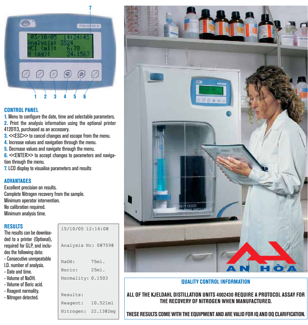 o Hai gradient nhiệt độ có thể lựa chọn: Kjeldahl / D.Q.O.